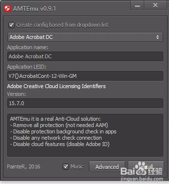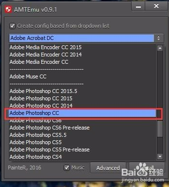 關(guān)閉PS cc2017后,打開Adobe CC 2017\amtemu.v0.9.1.win-painter下的amtemu.v0.9.1-painter按照下面的操作步驟即可。注意:第4步選取C:\Program Files\Adobe\Adobe Photoshop CC 2017\amtlib.dll 打開確定即可