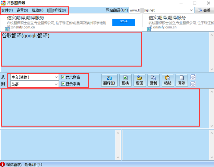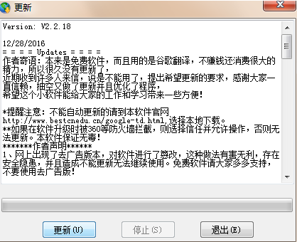 1. 修復(fù)因谷歌翻譯協(xié)議變化導(dǎo)致的不能翻譯的問(wèn)題.2. 優(yōu)化程序去掉沒(méi)用的拼音和詞典功能.