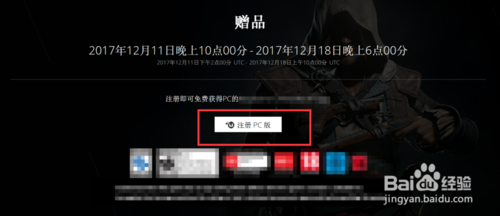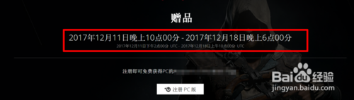 我們要領(lǐng)取的這款單機游戲必須要在2017年12月18日晚上6點00分前,這段時間我們領(lǐng)取是免費的,我們首先點擊“注冊PC版”進行賬號注冊,如果有賬號的小伙伴可以直接登入;詳情參考下圖