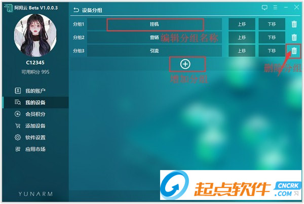 1、點擊“編輯分組”功能,可進行分組名稱編輯修改、位置移動以及添加、刪除分組。