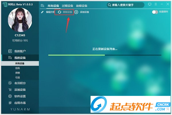2、點擊“刷新設備”,會完全重新獲取用戶設備列表。