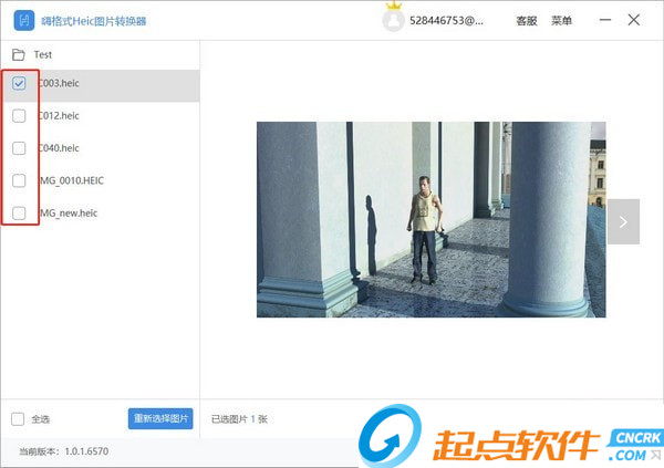 點擊圖片文件名前的方框,勾選需要轉(zhuǎn)換的Heic圖片。
