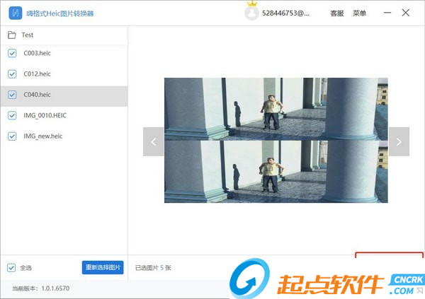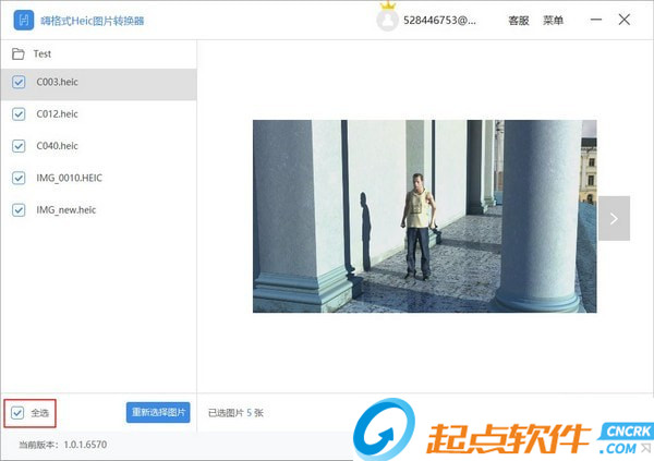 如果添加了錯誤的Heic圖片,可以點擊【重新選擇圖片】按鈕,重新導(dǎo)入新的圖片。