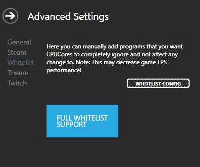 cpucores分離為處理核心,是專門用于您的游戲。此外,cpucores將允許游戲特有的超線程禁用/啟用。此外,高級選項允許你在處理核心和/或超線程,你希望你的游戲使用的是特定的(或不使用)。