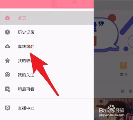 2、在個(gè)人面板中點(diǎn)擊離線緩存選項(xiàng)。