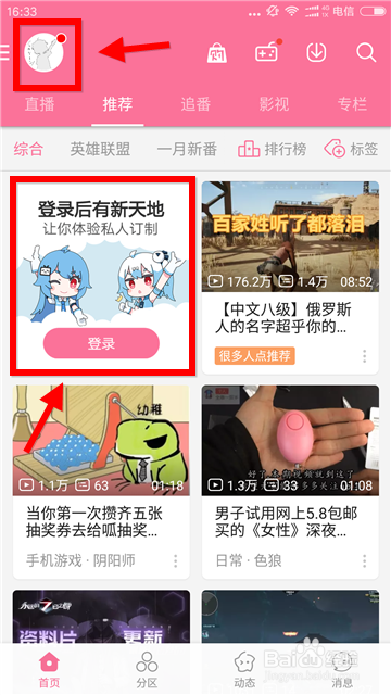 bilibili怎么下載視頻?1、游客模式是無法下載資源的,點(diǎn)擊頭像(或登錄提醒),輸入賬號密碼ok。