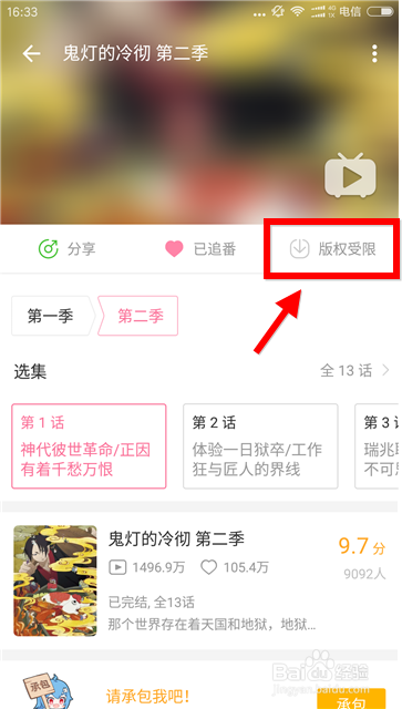 一類標(biāo)識為“版權(quán)受限”,只能在線觀看不可以緩存;