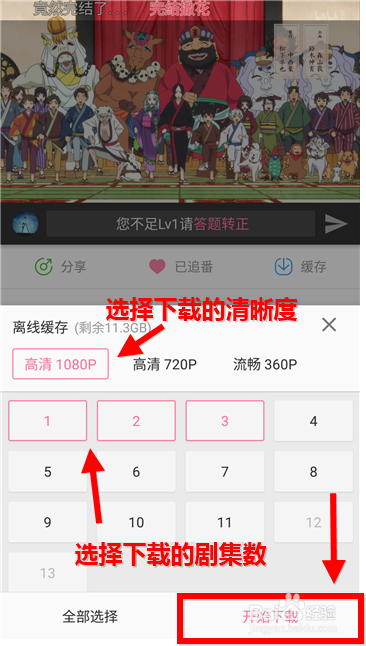 如果視頻內(nèi)容是一系列的,那么在需要緩存的集數(shù)上打鉤‘’