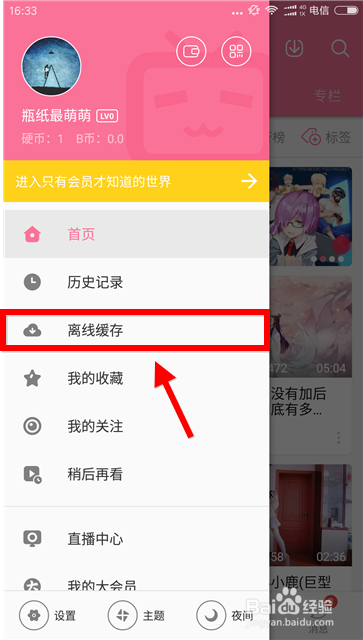 4、點(diǎn)擊個(gè)人頭像,然后選擇“離線緩存”,查看已緩存/緩存中的內(nèi)容。