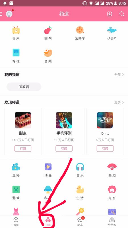 bilibili怎么緩存音頻?1、首先在bilibili首頁選擇頻道;