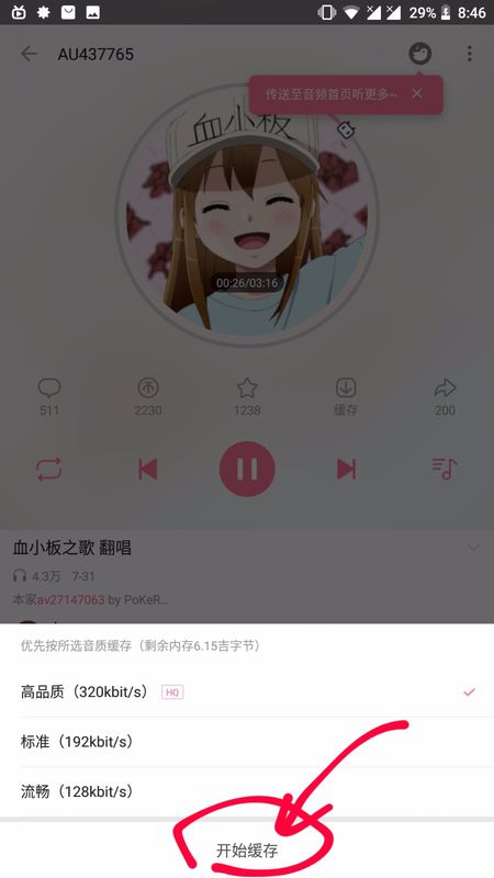 6、選擇音質(zhì)開始緩存;