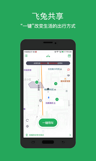 簡單的使用方式、開鎖、關(guān)門還車全都通過app進行操作。