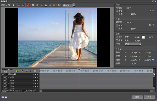 3、在信息欄中打開手繪遮罩對話框,在上面工具欄中點擊【繪制路徑】,然后用鋼筆將人物描繪出來;