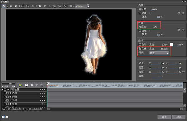4、然后將外部可見度設置0,設置邊緣柔化寬度為30,當然數(shù)值也要視情況而定;