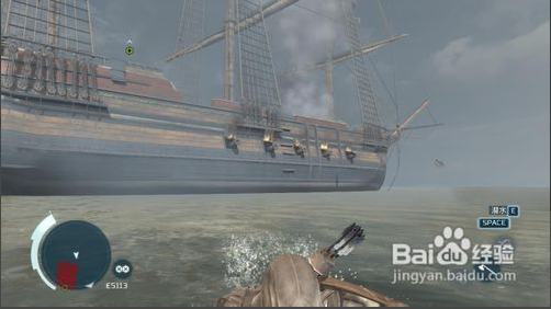游泳:刺客信條3有一大片水域,而且部分章節(jié)任務需要玩家操縱主角康納在海水中游泳。