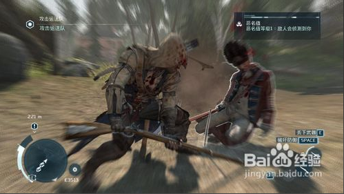 反擊:游戲中遇到軍官級別或者胖子等特殊類型兵種就不好對付了,你按了E鍵防守也經(jīng)常被胖子扇一巴掌。所以我們在攻擊或者防御時可以配合按下空格鍵,空格鍵是干啥的呢?刺客信條3中是破除對方防御的,這樣可以破除軍官或者胖子的防御然后再擊殺,就不會老是被欺負了。