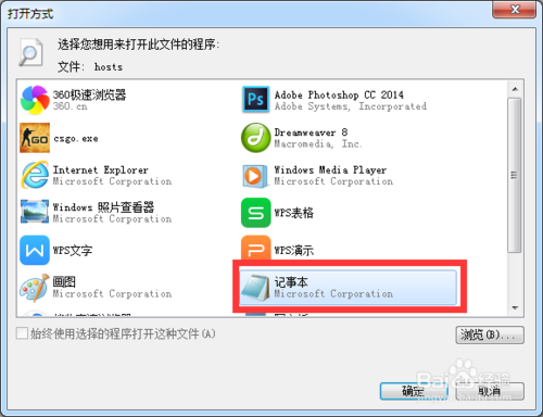 右鍵hosts文件,選擇打開(kāi)方式,如下圖所示