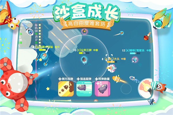 目標是生存到最后,成為最強的那架飛機!你將控制造型功能各異的飛行器,在危機四伏的云層中穿梭,通過極限走位躲避敵人的射擊,配合多樣化的策略成長,擊殺對手!你既可以是孤膽英雄,一人稱霸全場;也可與好友一起,埋伏、突襲、引誘、反殺,感受互動的樂趣!而隨機出現(xiàn)的奇葩道具,也將帶來更多的隨機性與戲劇性!