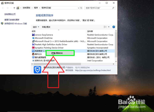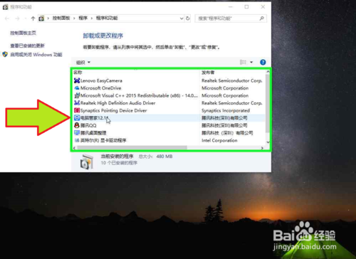 4、在"電腦管家12.11 (編輯)"上右鍵單擊(在"程序和功能"中)。