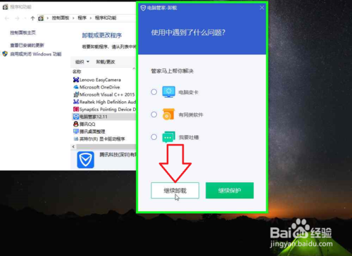 6、在"電腦管家 卸載 (窗格)"上左鍵單擊:"繼續(xù)卸載(按鈕)",(在"電腦管家 卸載 "中)。