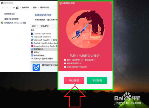 10、在"是 (按鈕)"上左鍵單擊(在"電腦管家卸載"中)。