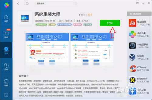 4、點(diǎn)擊界面第一個(gè)搜索結(jié)果“系統(tǒng)重裝大師”,進(jìn)行安裝。