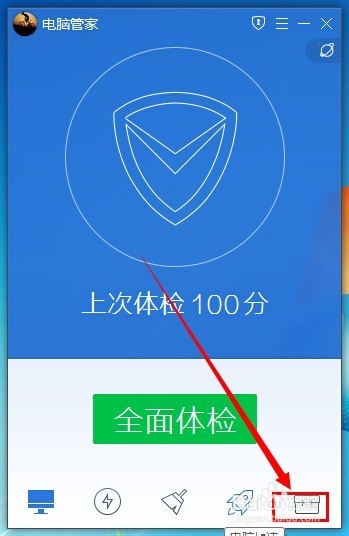 電腦管家如何固定網(wǎng)址?1、在電腦管家下方工具標(biāo)記處,打開(kāi)工具面板。