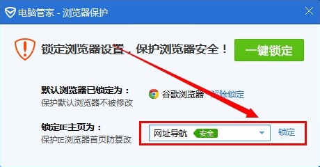 4、輸入你想作為主頁(yè)的網(wǎng)址,然后點(diǎn)擊“鎖定”即可。