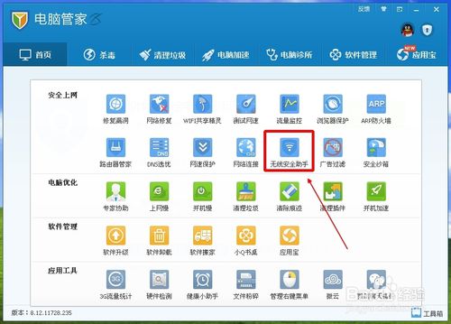 1、在電腦管家里找到工具箱主板面,點(diǎn)擊路由器管家