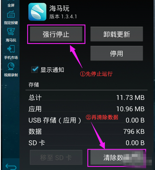 海馬玩安卓模擬器應(yīng)用數(shù)據(jù)清除辦法。