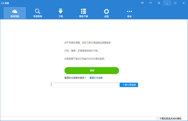 速盤與百度網(wǎng)盤客戶端一樣支持離線下載,使用離線下載功能必須登錄百度網(wǎng)盤賬號。