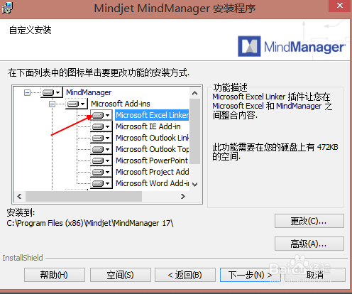 在箭頭所指的位置可以選擇安裝軟件的功能