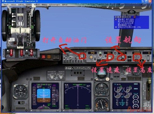 打開自動(dòng)油門,設(shè)置航向、速度、高度