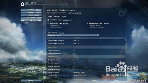 這個(gè)則是飛機(jī)控制的選項(xiàng),在里面你可以隨你的喜好更改飛機(jī)控制