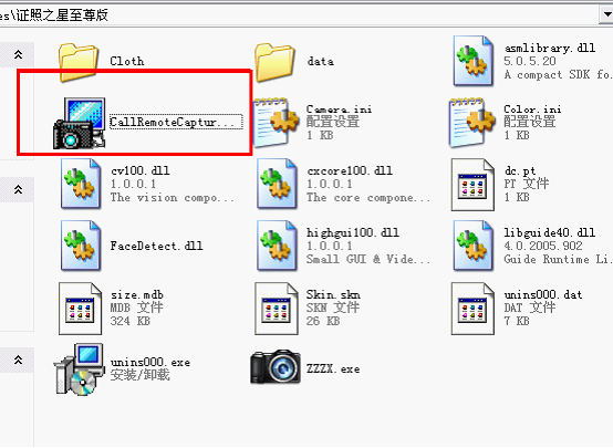 在證照之星的安裝目錄下我們會看到這樣一個可執(zhí)行程序CallRemoteCapture.exe,該程序用于調(diào)用相機的驅(qū)動程序來進行拍攝。
