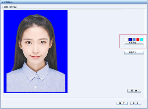 點擊“背景處理”,彈出“智能背景替換”對話框。按照下列步驟進行背景替換:
