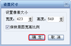 也可以通過“自定義尺寸裁切”來裁剪照片。點擊“自定義尺寸裁切”,彈出“設(shè)置尺寸”對話框,設(shè)置像素的寬度和高度,如果選擇“保持原圖高寬比例”,則調(diào)整高度或?qū)挾葧r,寬度和高度也會同比例發(fā)生變動,點擊“確定”按鈕,按鈕彈出“自由裁切工具”,拖動裁切框至合適的大小和位置,點擊“確定”完成照片裁切。