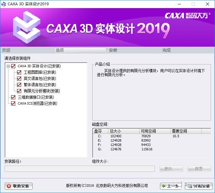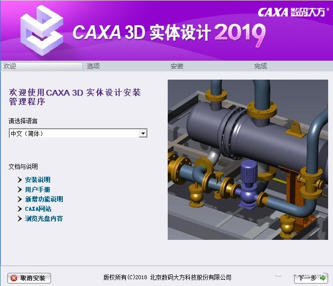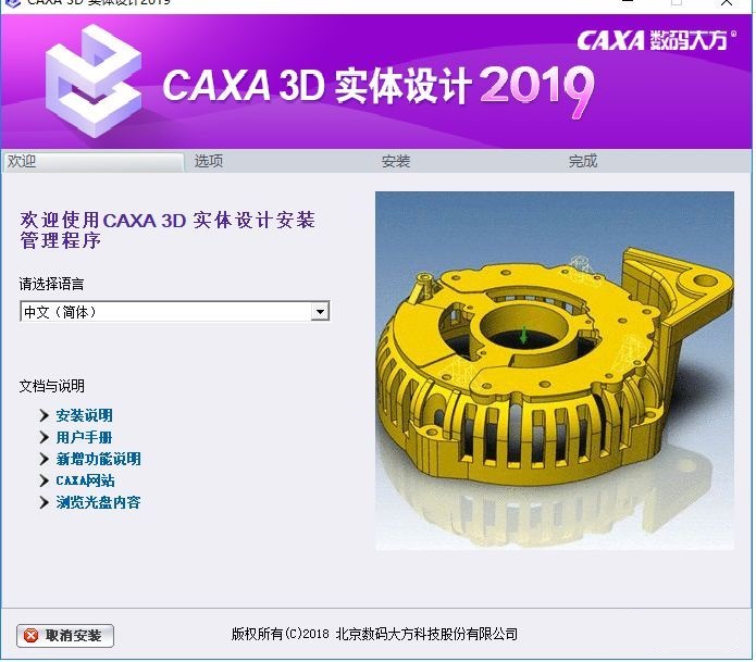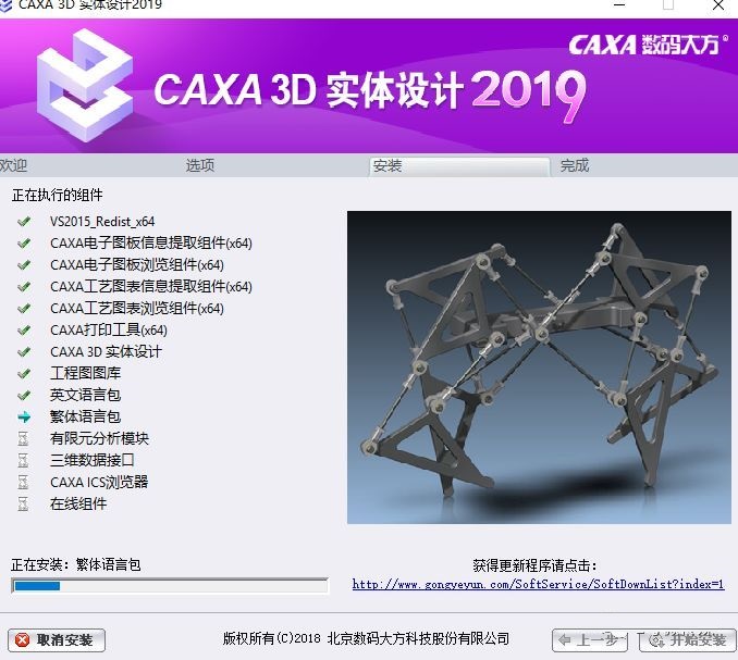 CAXA 3D實(shí)體設(shè)計(jì)2019正在安裝中,如圖