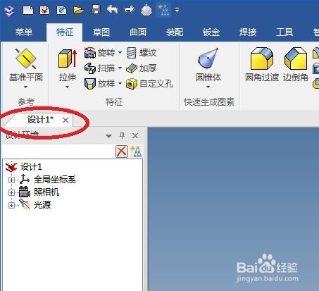新建一個(gè)設(shè)計(jì)環(huán)境,默認(rèn)的文件名為“設(shè)計(jì)1”(見(jiàn)紅色框選)。