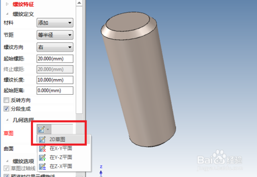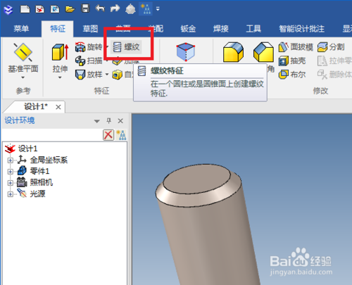 點(diǎn)擊特征工具欄中的“螺紋”圖標(biāo),激活螺紋命令。