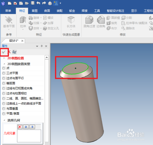 點(diǎn)擊完平面之后,就點(diǎn)擊屬性對(duì)話框中的√,完成2D草圖的創(chuàng)建。