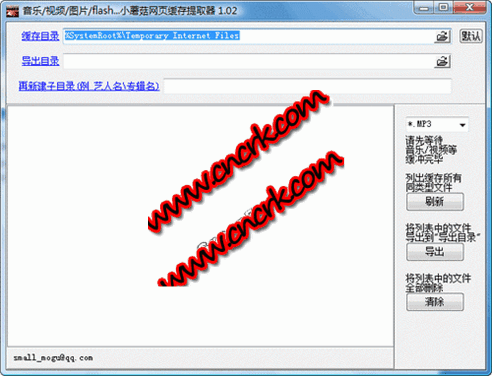 小蘑菇緩存提取器小巧易用,一鍵提取internet緩存。網(wǎng)頁上無法下載的flash、視頻、試聽音樂等等,都保存在緩存文件夾中。有了小蘑菇緩存文件提取器,直接按格式提取文件,不用去緩存文件夾中尋找