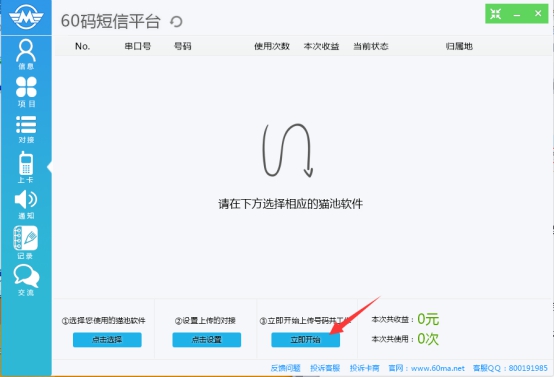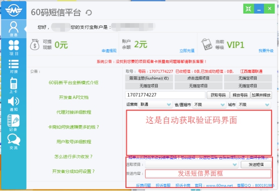 60碼短信平臺登錄成功,我們就可以開始使用軟件在線接收任務賺錢了。