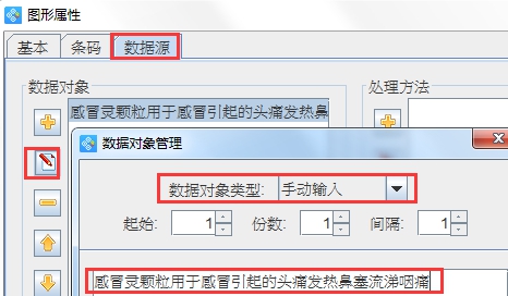 使用軟件左側(cè)工具欄中的“繪制普通文本”按鈕,在畫(huà)布空白處繪制出一個(gè)文本框,在文本框上點(diǎn)擊鼠標(biāo)右鍵選擇“屬性”按鈕,在彈出的屬性窗口中,選擇“數(shù)據(jù)源”選項(xiàng),在左側(cè)“數(shù)據(jù)對(duì)象”欄中,先點(diǎn)擊減號(hào)按鈕,刪除默認(rèn)數(shù)據(jù)對(duì)象,然后點(diǎn)擊加號(hào)按鈕,添加新的數(shù)據(jù)對(duì)象,數(shù)據(jù)對(duì)象類(lèi)型為“手動(dòng)輸入”,在輸入框中輸入固定不變的文本信息,完成后點(diǎn)擊確定即可。