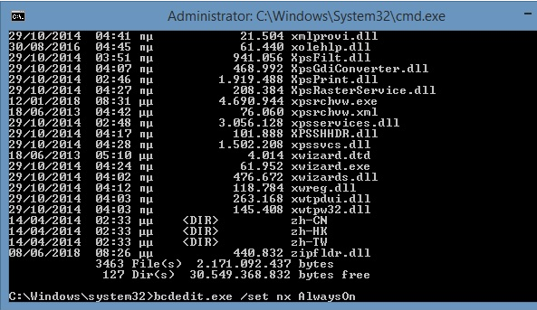 bcdedit.exe /set nx AlwaysOn