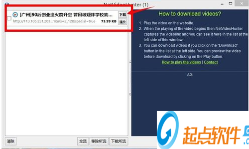 Netvideohunter已經(jīng)自動檢測了當(dāng)前頁面的視頻文件了,我們只需要勾選需要下載的視頻文件。點擊下載即可