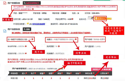 (記著只要有數(shù)字不是0,就堅(jiān)決不要用!尤其是降權(quán)處置的?。?br />看最下面該用戶(hù)近一周已被幾個(gè)商家查詢(xún)過(guò)數(shù)據(jù)!(一般超過(guò)10就注意,是不是周超了)