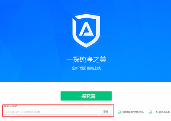 1、首先我們需要在本站下載ADSafe凈網(wǎng)大師官方軟件包,下載完成后我們就可以得到exe的安裝文件,我們鼠標左鍵雙擊就可以進入到下圖中的安裝界面,接下來我們開始進行安裝。