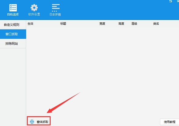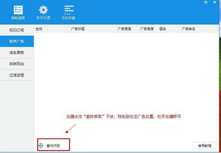2、接下來我們進入到下圖中的界面,我們點擊界面下方的“窗體抓取”選項,這里需要注意的是我們左鍵點擊窗體抓取選項后不能松開,要直接拖拽到廣告彈窗上。