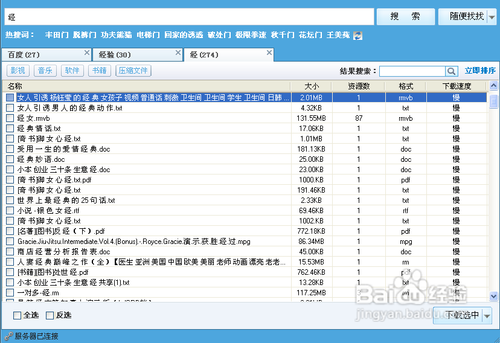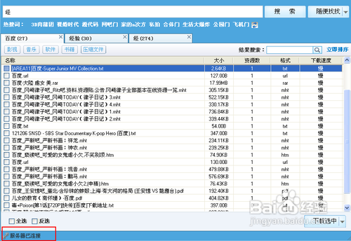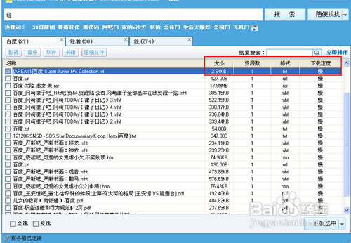 對(duì)于里面搜索后的功能應(yīng)用,可以點(diǎn)擊如圖所示地區(qū)對(duì)資源的大小,資源數(shù),格式,下載速度進(jìn)行帥選,根究個(gè)人需要而定。